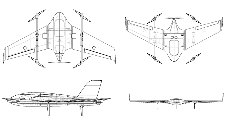 本部分提供基本的飞行器,部分动力配置,术语和定义,单位换算表格等描述信息。如飞机三视图、飞行器尺寸信息、动力装置类型、最大起飞重量、巡航速度等。本部分主要为快速熟悉该型号无人机提供参考。